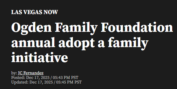 KSNV News 3 features the Ogden Family Foundation as we launch our 11th Annual Adopt-A-Family Campaign, showcasing how the program supports local families through holiday assistance and how the community can sponsor, donate, and participate.